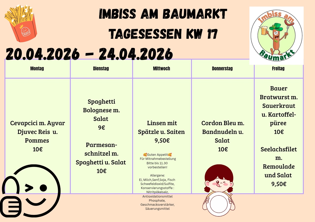 Imbiss am Baumarkt LeingartenTagesessen KW 17